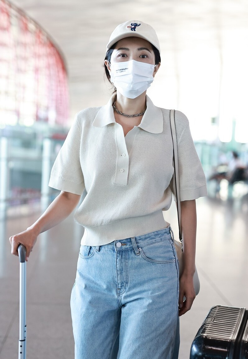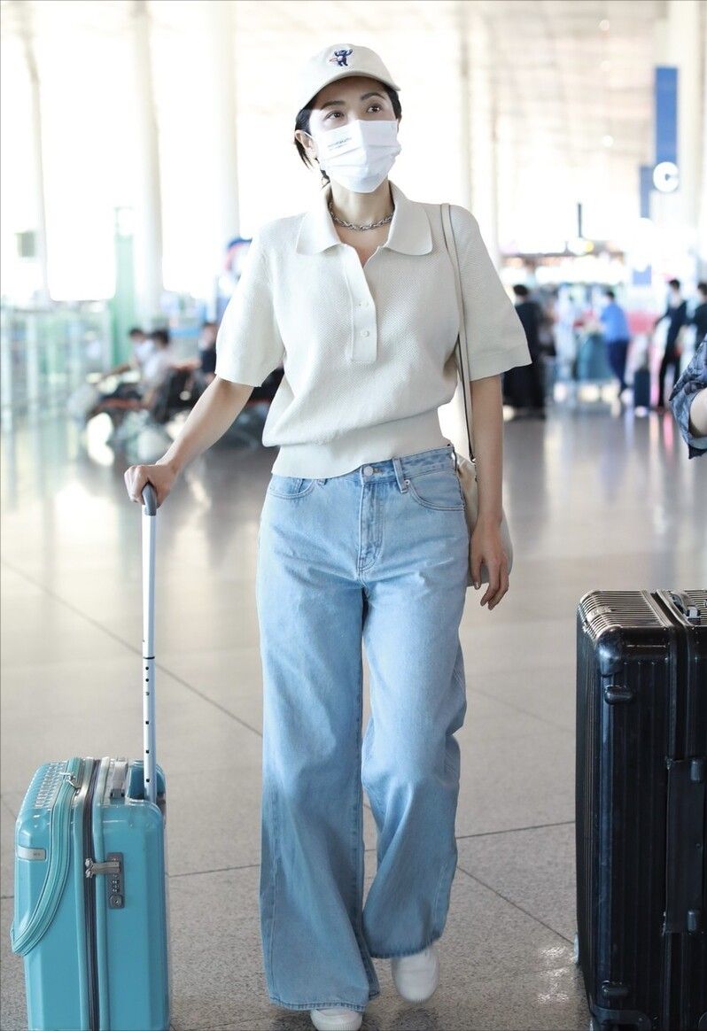 A simple pure white polo shirt paired with wide-leg jeans makes people think of their first love, and has a proper image of a college goddess, with an elegant and fresh style.
