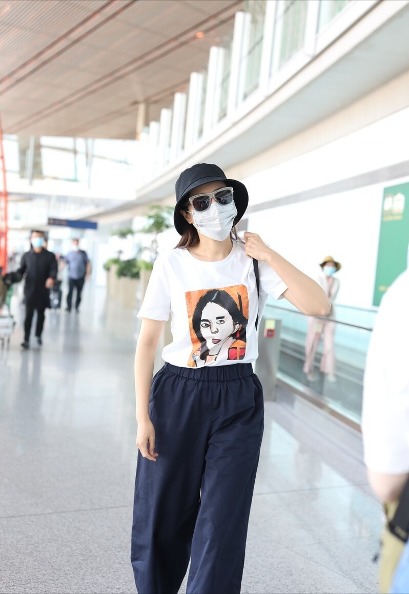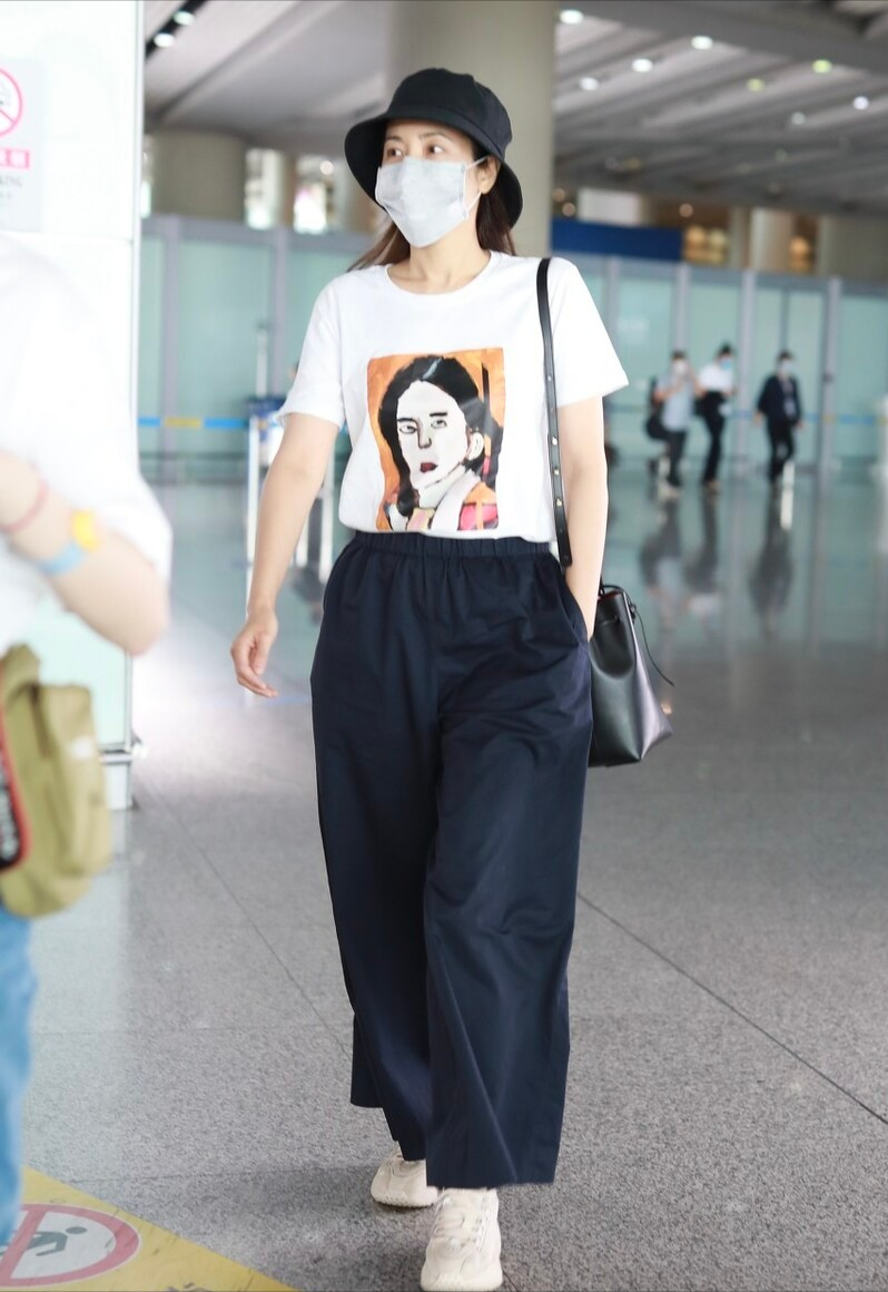 The print of this T-shirt is very distinctive and attractive, and I also chose black pants and a fisherman hat. In terms of color, It is relatively more responsive, and I also chose a black bucket bag.