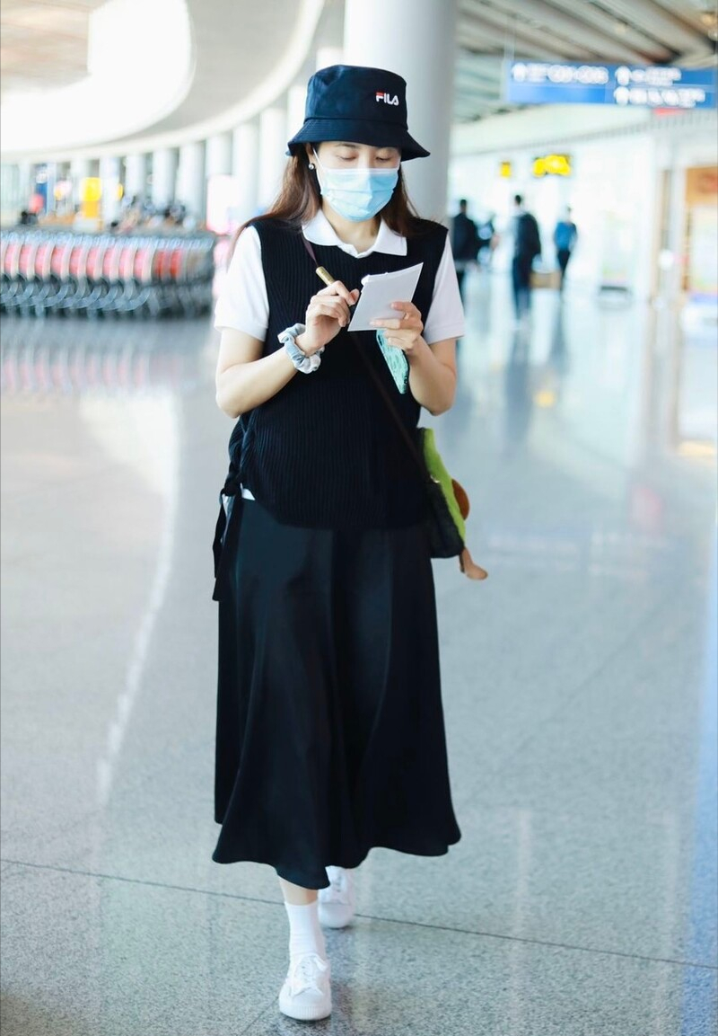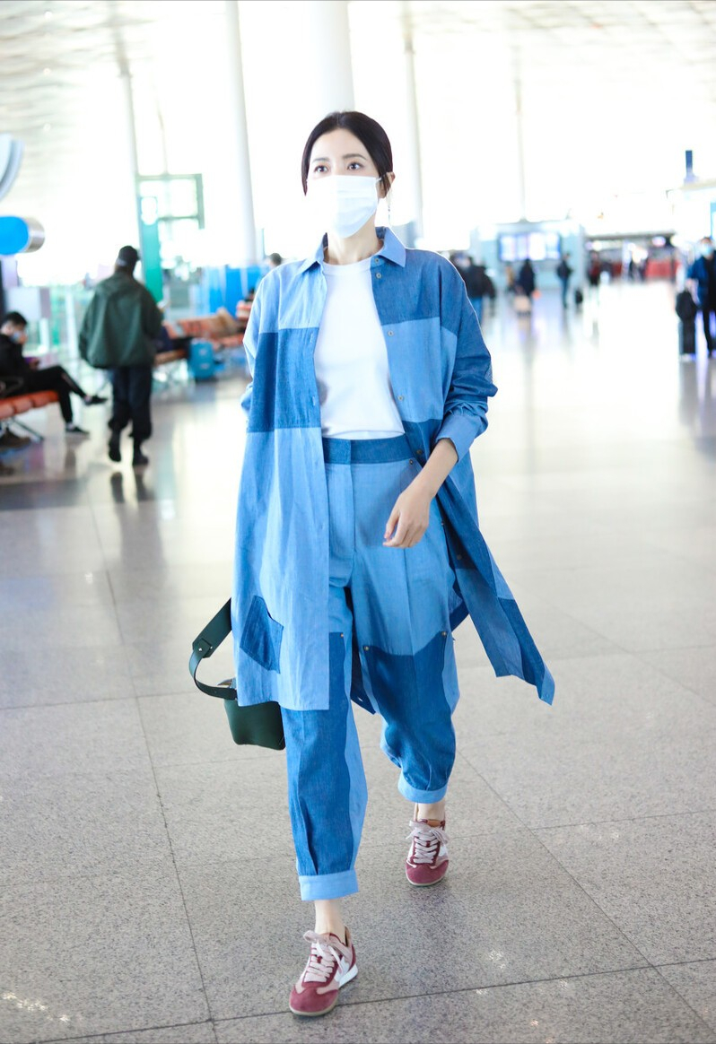 Although it is a spliced ​​design, it is not a very regular whole and looks very youthful. She manages such a trendy style very well, and it can be seen that her sense of fashion is still very strong.