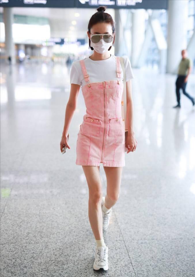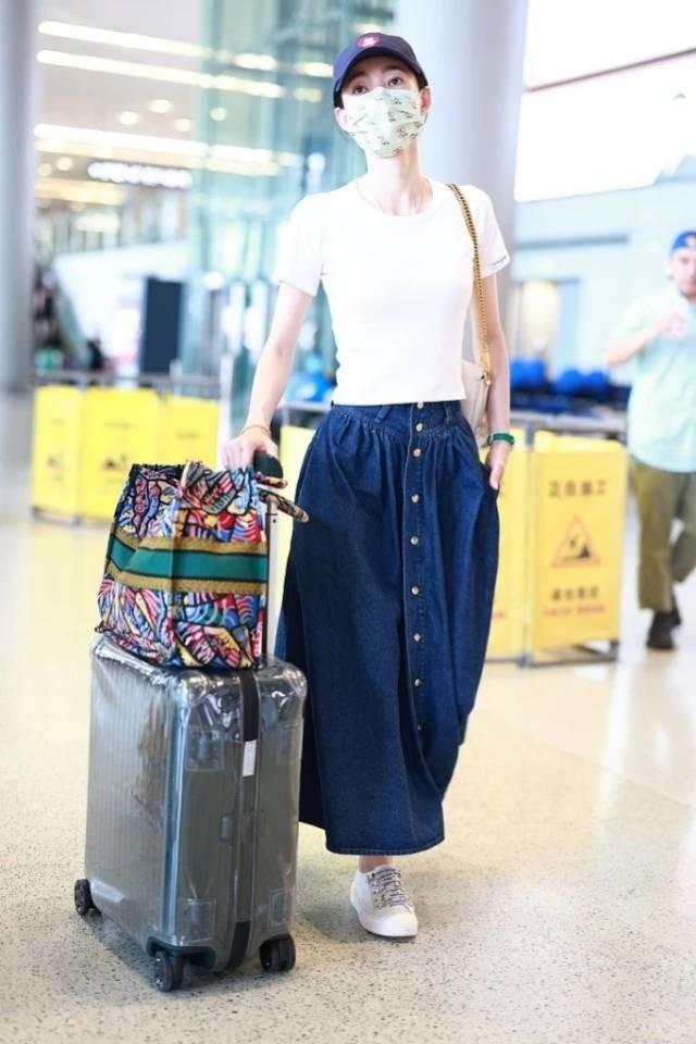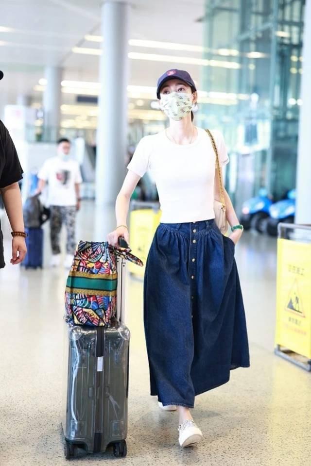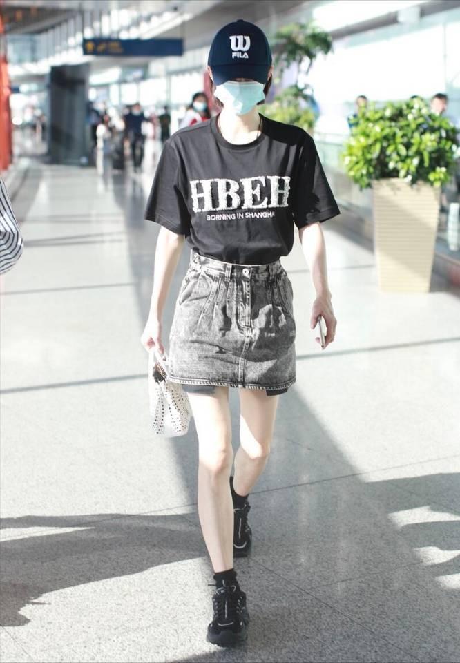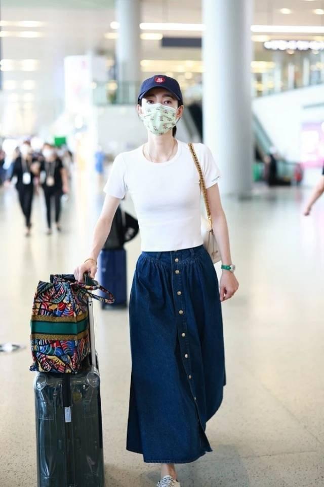 Whether it is a solid color T-shirt or a denim skirt, they are all simple items, but Wang Likun wears them in a fashionable style and is not distracted by the combination of denim elements and long styles. It seems boring, which is because she pays attention to the details of the painting.