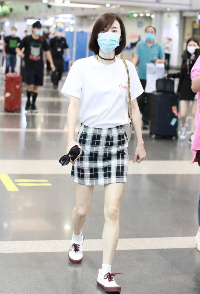 White T-shirts and denim skirts have a variety of styles to choose from, and Wang Likun chose a more artistic and elegant version, making the overall matching effect look quite down-to-earth, while still being fashionable. .