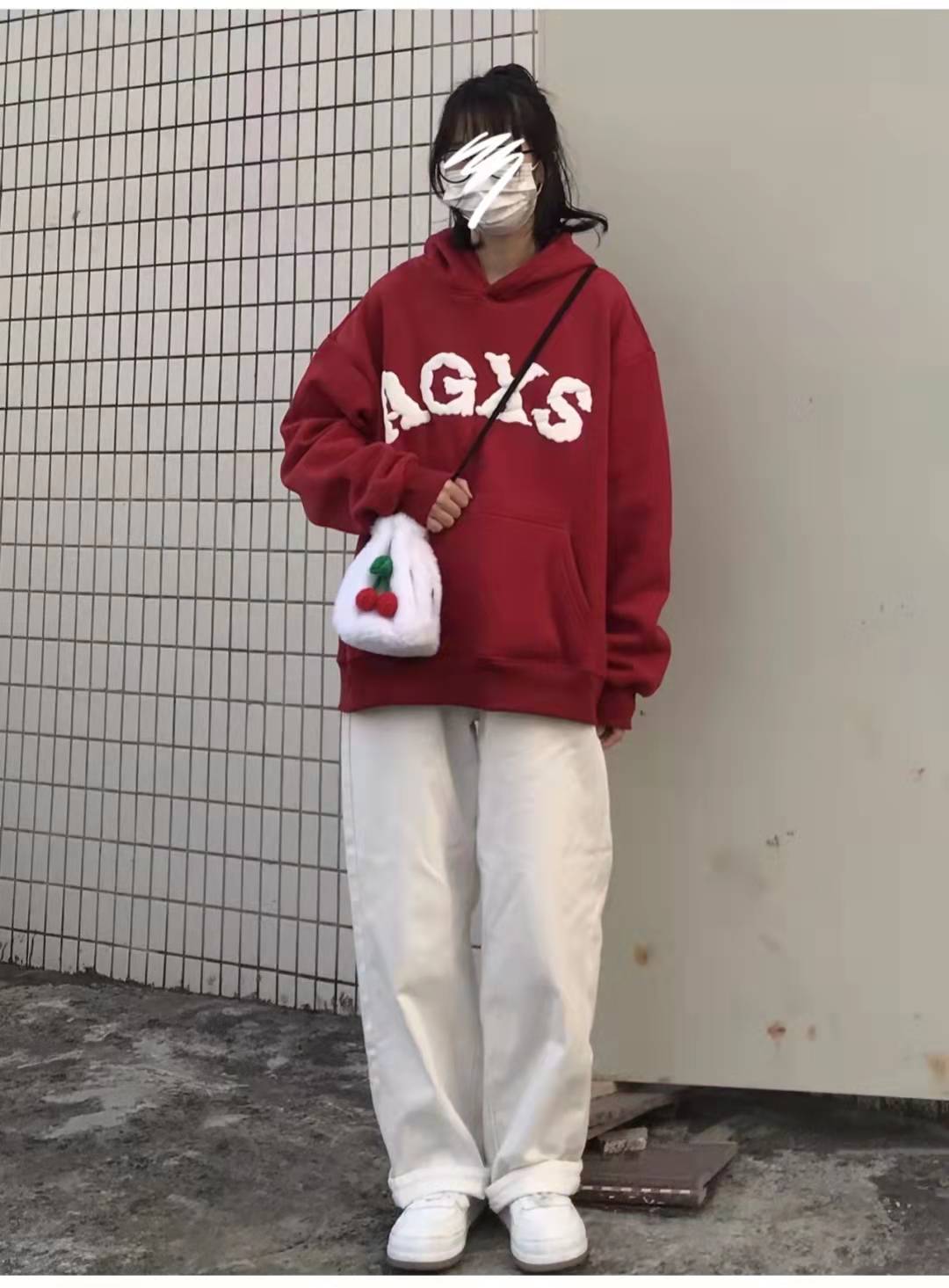 Red sweatshirt matching:Everyone who sees this outfit praises how beautiful it is, and it is very flattering. It is very suitable for the New Year! The top is a red hooded casual pants and sweatshirt jacket. The simple white letter design is fashionable and elegant. The lower body is paired with white wide-leg pants and white shoes. The matching combination is very simple and elegant.