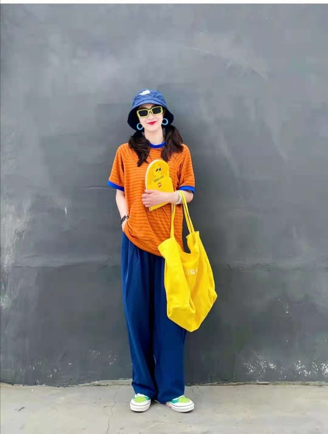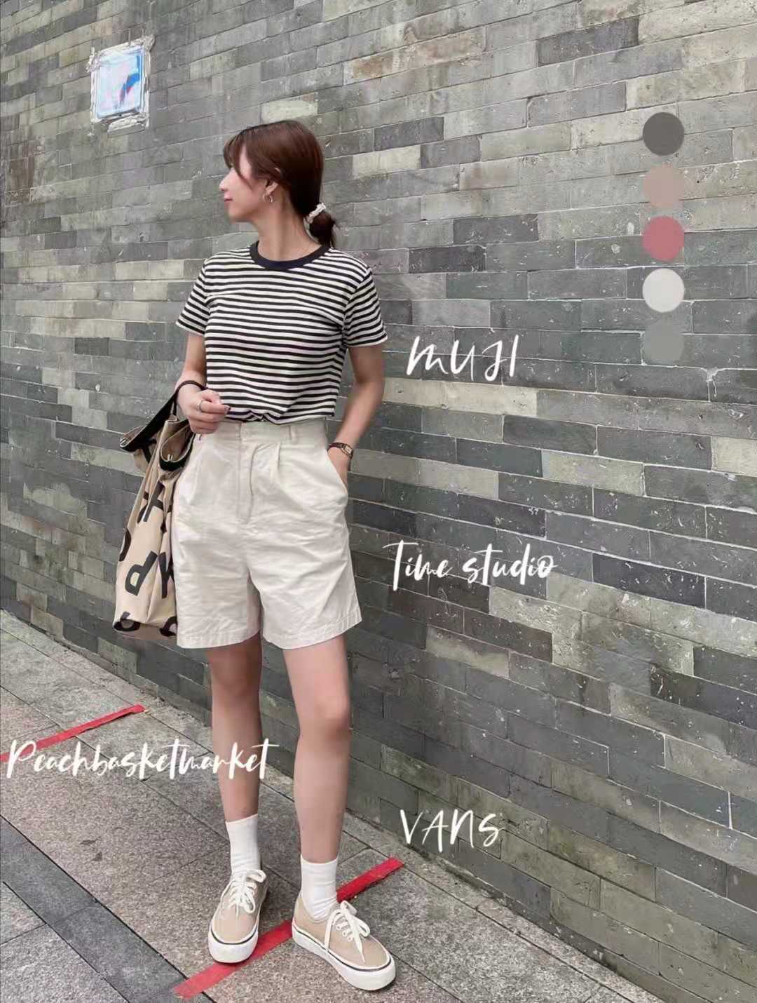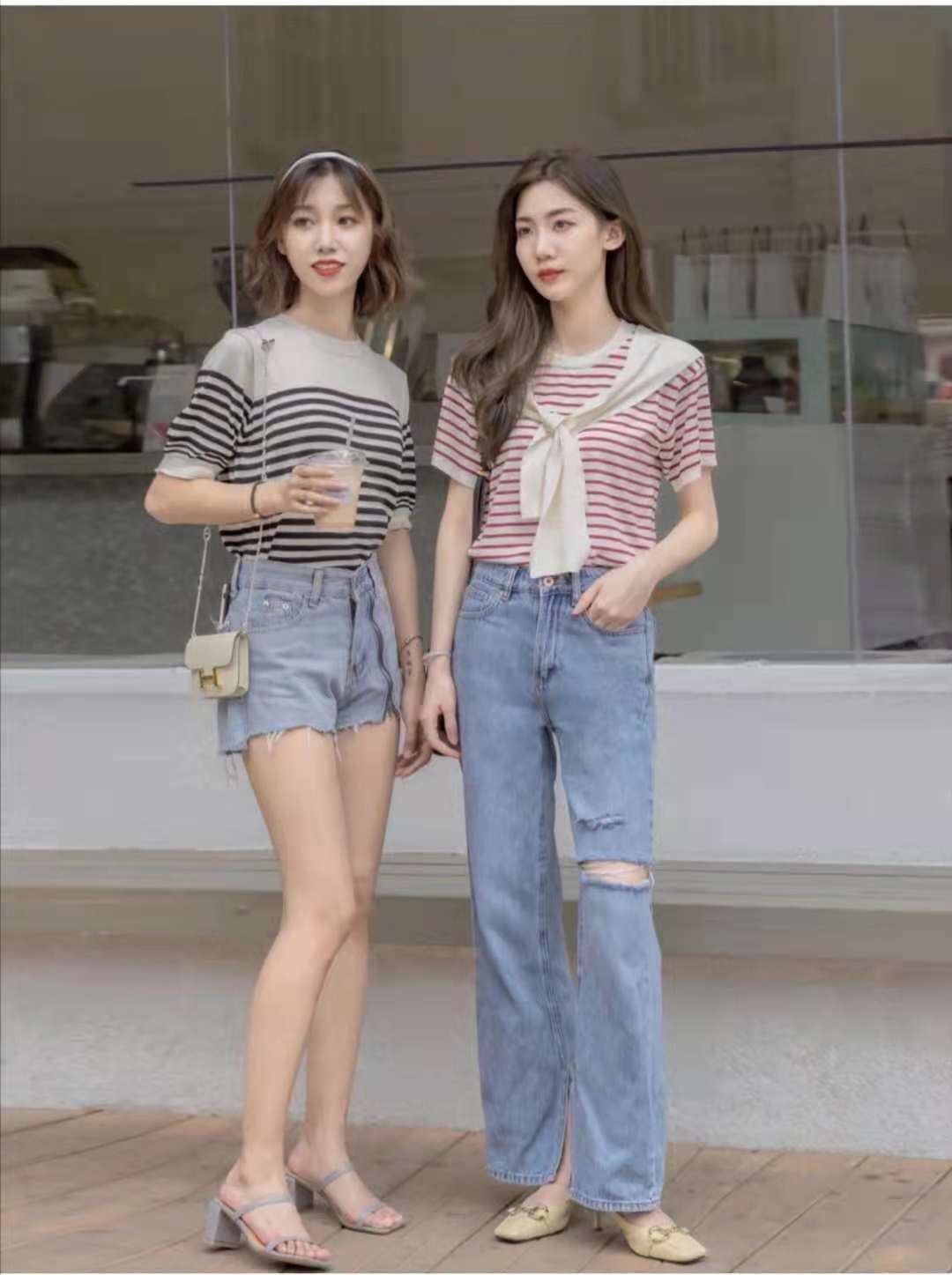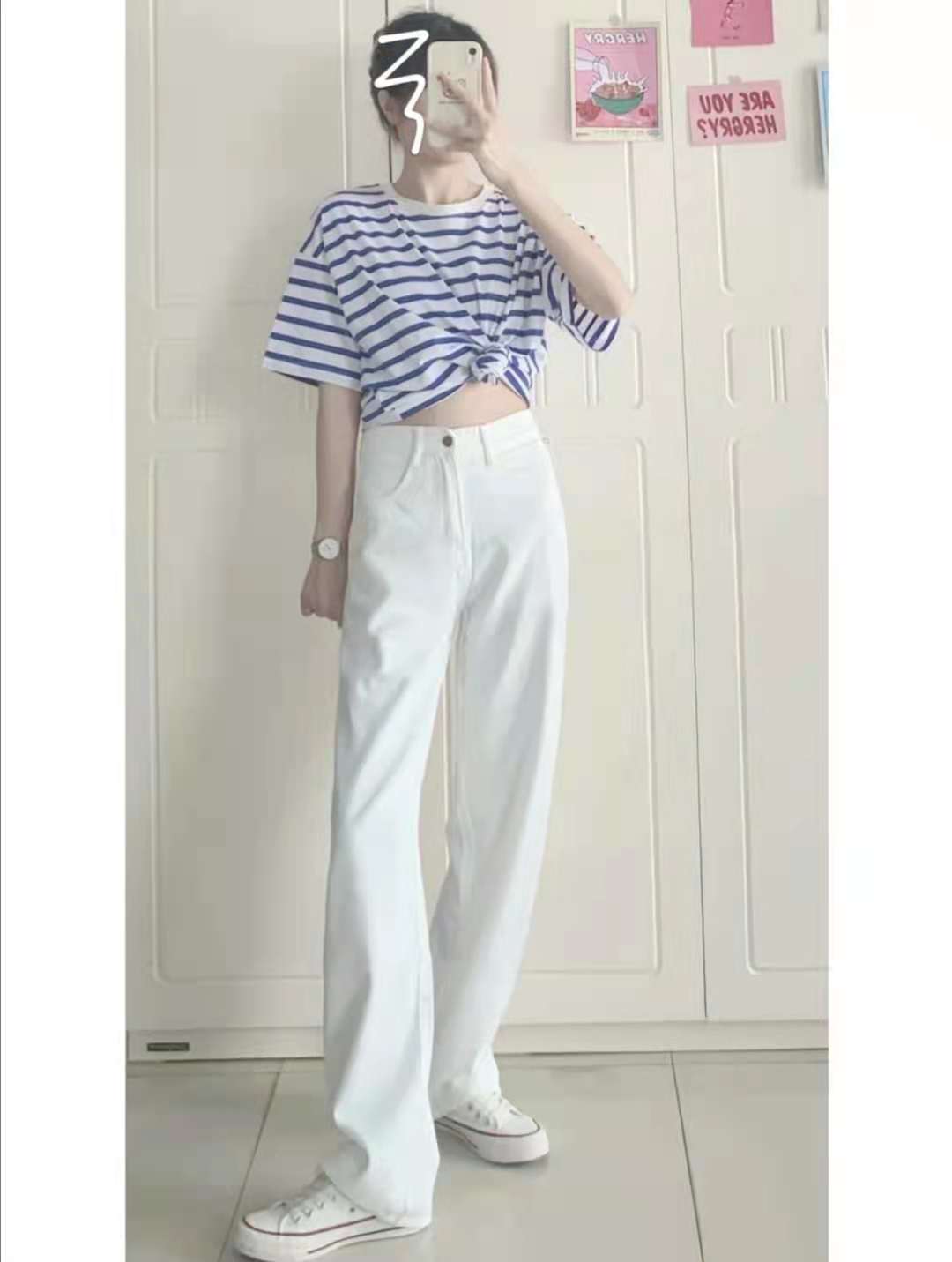 Striped T-shirt with trousers: A sweet or salty blue striped shirt. The new striped short-sleeved shirt is also so beautiful. The fabric is soft and comfortable on the upper body. When wearing it, the whole person looks sunny and white. Blue stripes, the lower body is paired with white wide-leg pants + white canvas shoes. The shape of the pants makes the legs look longer. Sisters with pear-shaped figures must try it! The fabric is soft, the thin model doesn’t feel stuffy, and it’s just so beautiful.