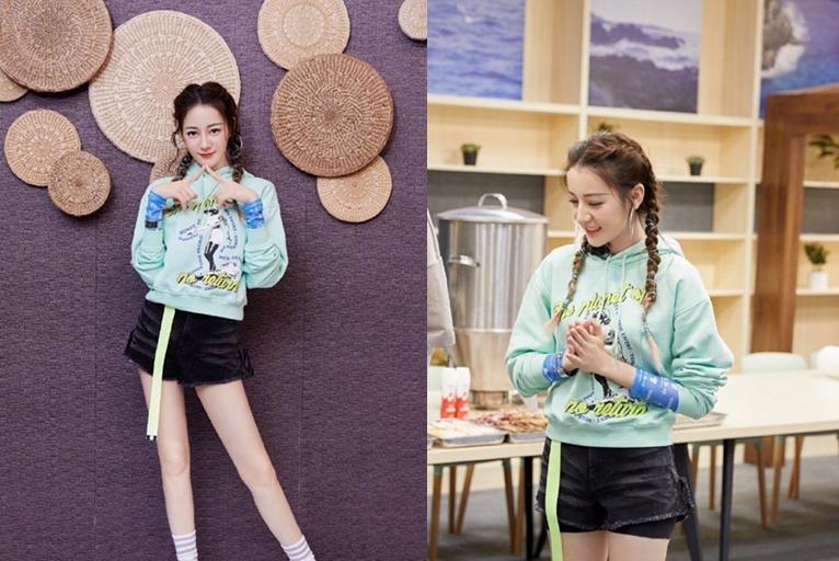 Dilraba is wearing a mint green sweatshirt. This color is more suitable for skin color, and it is also a special color. In summer, it can give us a happy mood and bring us the enjoyment of beauty.