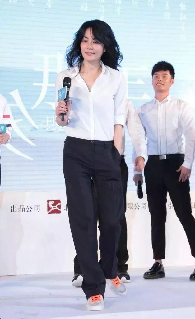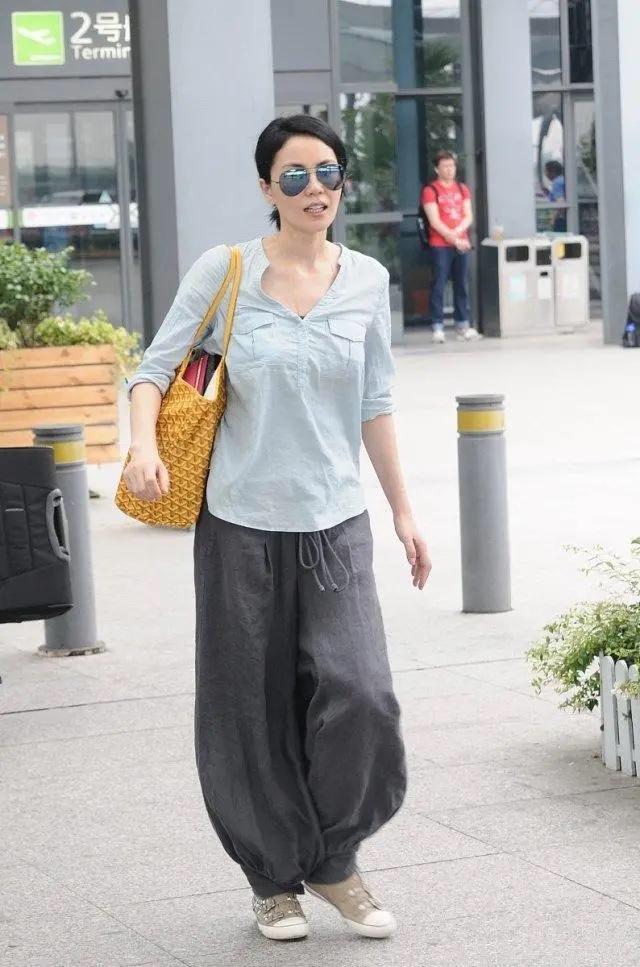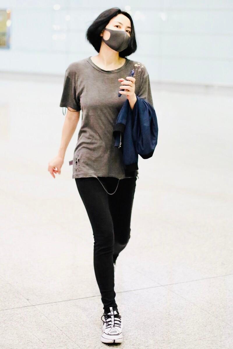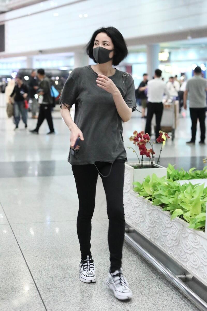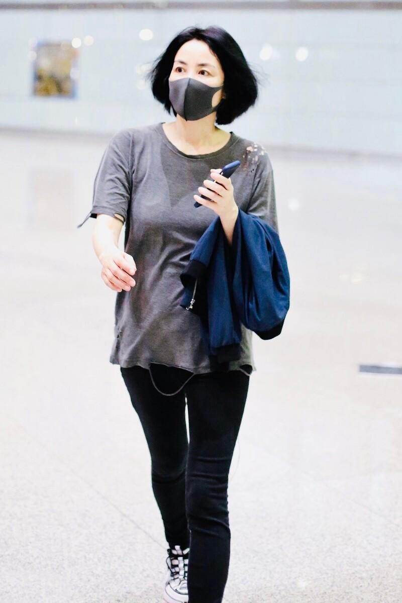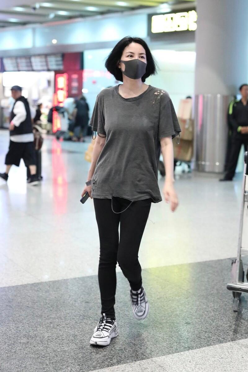 Using a T-shirt with leggings is simple and casual. The overall style is casual and comfortable. Faye Wong’s personal clothes are really casual. Textbook level, this is also a way to show her character.