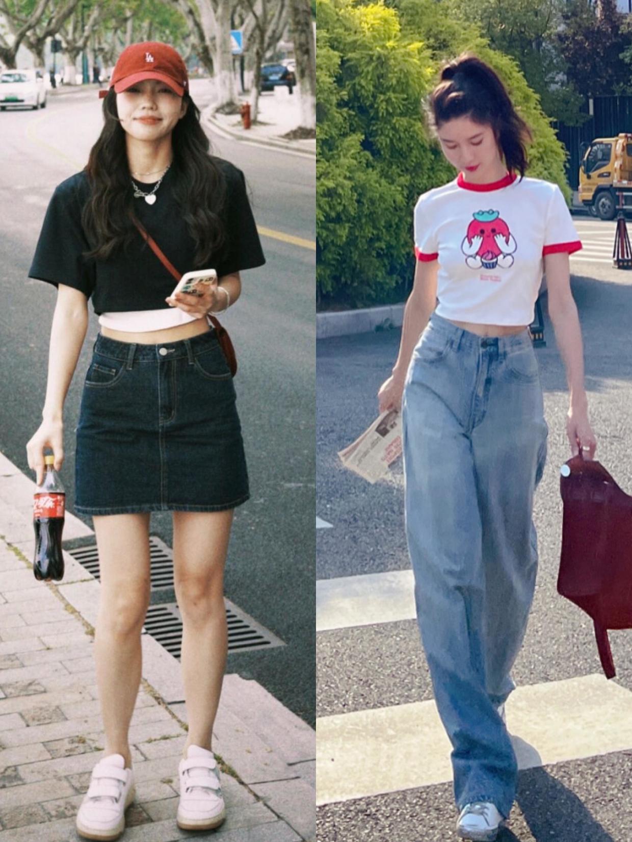 Oversize T-shirts are very popular now. Although this style has a particularly obvious flesh-covering effect, it can also give people a strong sense of comfort when paired with it in daily life. . But it incorporates a short cut, which can show off our small waist, and is especially suitable for girls with skinny figures. The weather is getting hotter and hotter. Wearing such clothes is sexy and playful without looking too exaggerated.