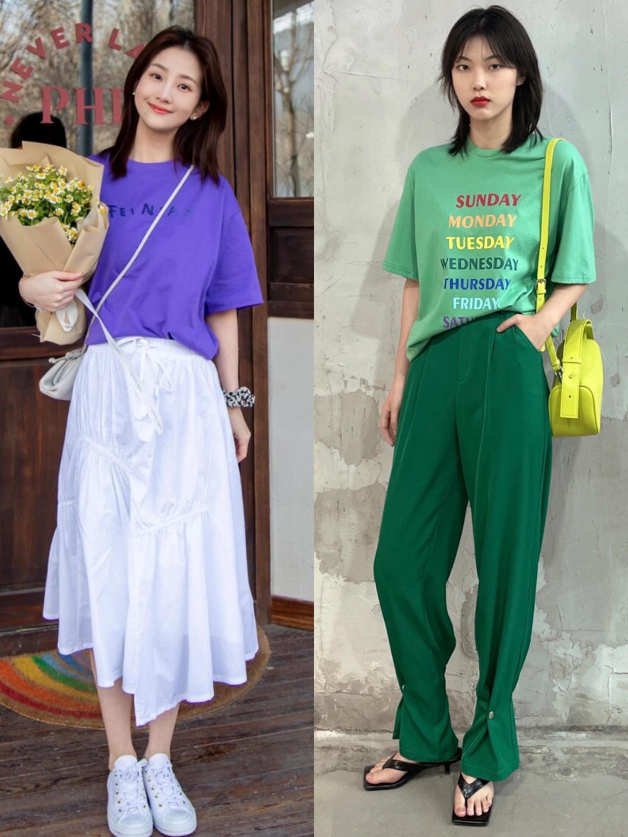In fact, the styles of T-shirts are similar. At this time, we can do something about the color. The effects of different colors on the body are completely different. Bright colors blended into T-shirts can brighten your skin tone and make you feel more youthful and energetic. You don’t have to worry about bright-colored T-shirts looking too fancy. We can match them with black, white and gray bottoms, or choose ones in the same color series as the T-shirts, so that the color stacking won’t look too complicated at all.