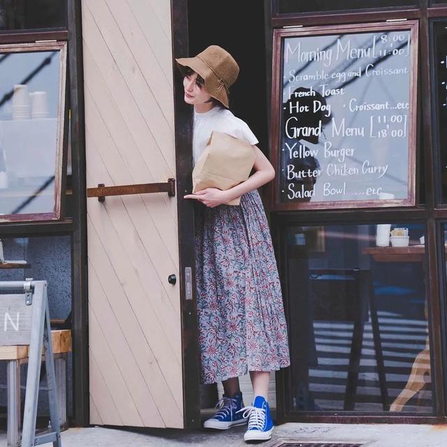 In spring and summer, skirts with printed elements appear very frequently. For skirts with printed elements, Girls must pay attention to the pattern and background color when choosing. It must not be too messy. Those who like printing must have certain characteristics. The T-shirt that matches the upper body can be solid color or have a small design or pattern.