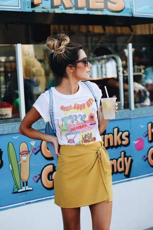 T-shirts and skirts come in a variety of styles. If the two items are stacked together, you must consider the details of the matching.Section, accurate to every single item.
