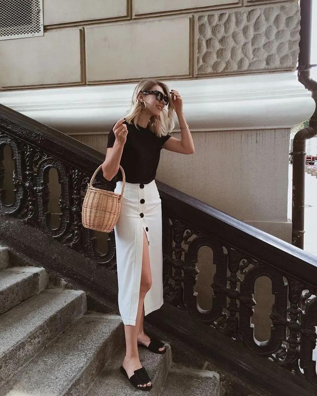 For girls with good figures, they can be more bold and open when wearing two itemsIf you have an S-shaped figure , the T-shirt chosen for the upper body and the skirt chosen for the lower body can both be tight-fitting.