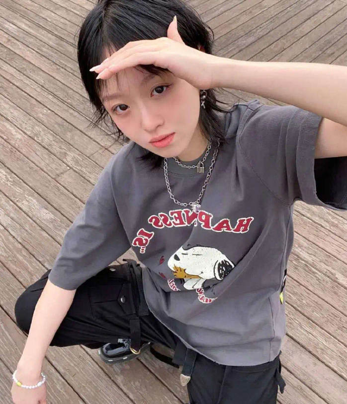 Although many people now advocate solid color T-shirts, but , for those girls with big breasts and broad shoulders, a solid color T-shirt will make the flaws of your figure visible at a glance, and the absence of any elements means that there is no coverage. Appropriate printing will not only make the solid color T-shirt visually focused, but also make your body shape defects achieve a visual transfer effect.