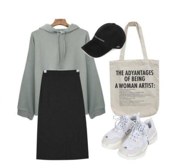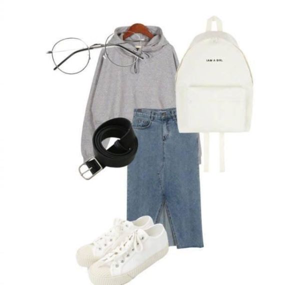 When it comes to sweatshirts, everyone may have the impression that they are more neutral or more casual, but in fact, sweatshirts can also become very feminine. Paired with a skirt, you can show off your feminine side, and it can cover your flesh and make you look slimmer. Especially this slit denim skirt is simply perfect.