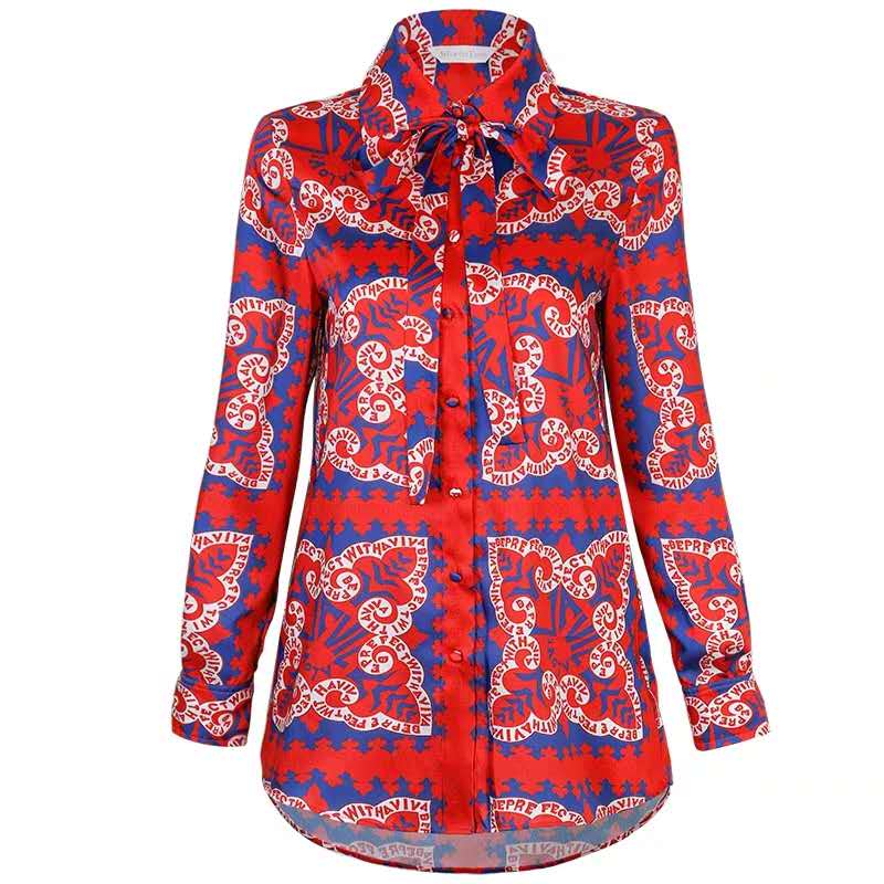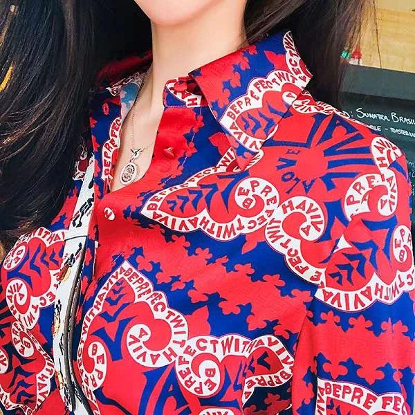 The style of the shirt is fashionable and versatile. This bright color is very suitable for spring and summer. The red is the base color, integrating fashion and high-end The cut-flower pattern collides with the blue, making it high-end and soft.