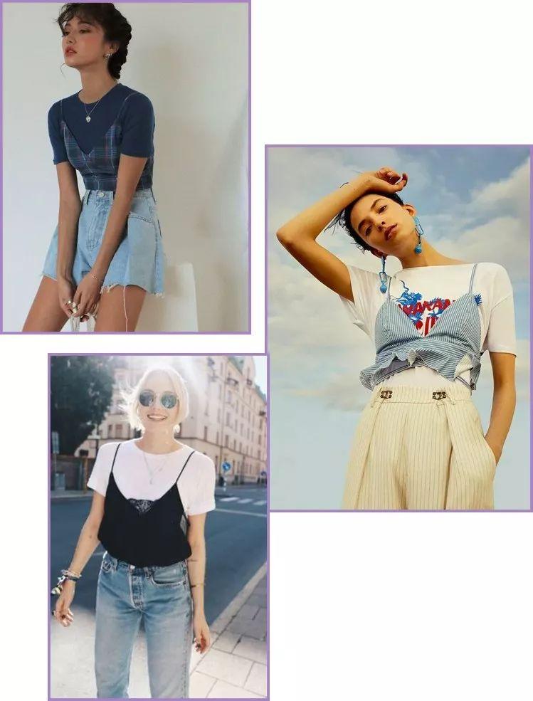 Want to take the girly route? no problem! Pair a colorful T-shirt with a white or cute inner of the same color! The whole person is full of energy! A black and white T-shirt with a colored base underneath is also ok~