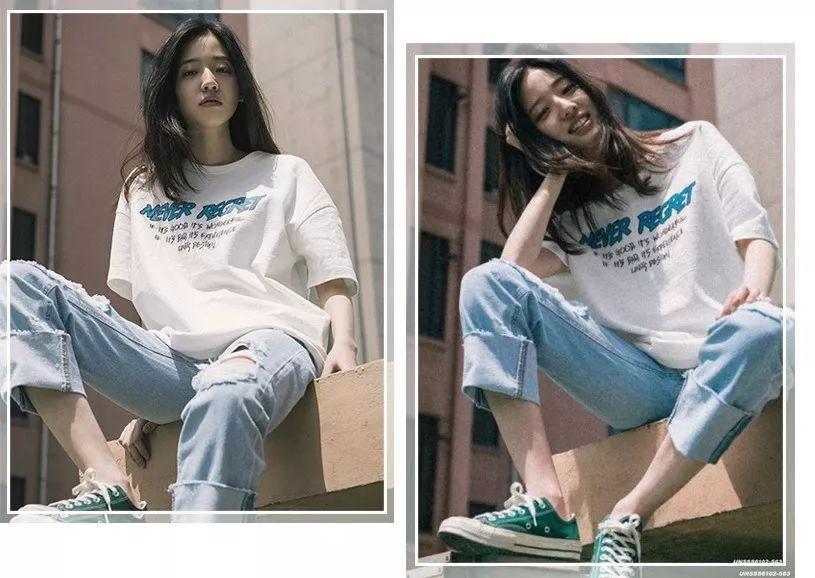 The simplest combination that will never change is T-shirt + jeans. It is comfortable and clean. This set should be the most commonly worn combination~