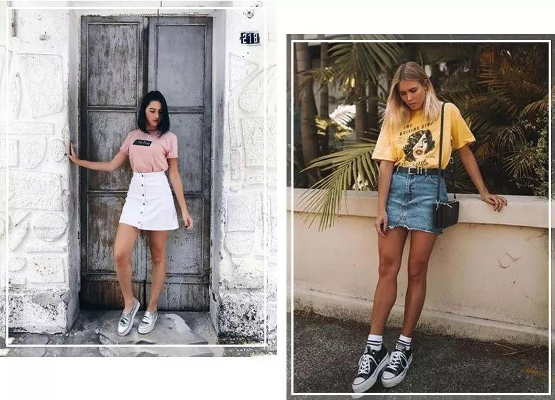 T-shirt and skirt can be said to be one of the classic combinations! Both short and long skirts are beautiful~