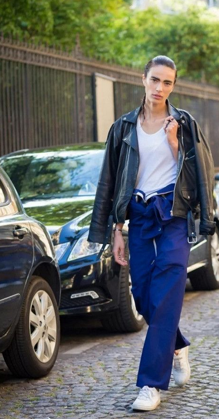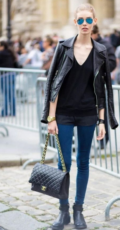 A must-have jacket style for cool girls. Just wear a simple T-shirt underneath. Similar mix and matches are very suitable for girls with individual styles.