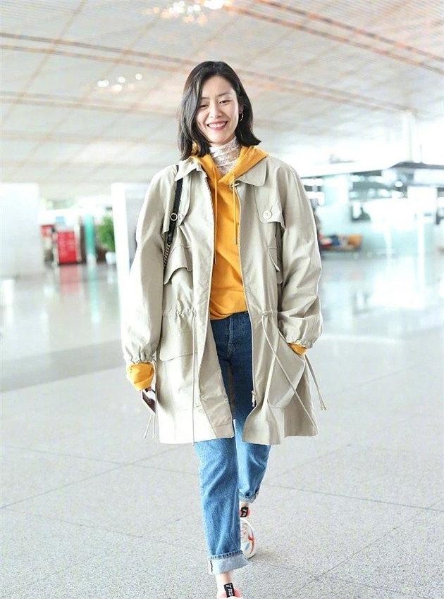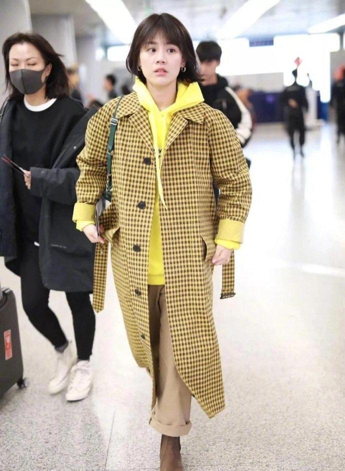 Yellow sweatshirts always give me a Pikachu feeling. Such a sweatshirt will match the style. The patterned trench coat is very eye-catching. At the same time, it will be very warm to wear in this weather and not cold at all. If we step on a pair of khaki Martin boots, we will look particularly good.