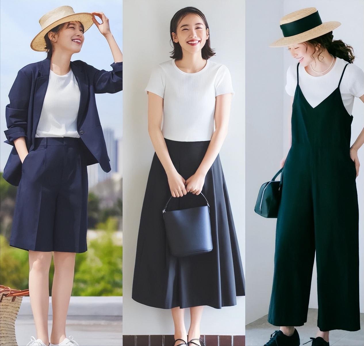 Pure white T-shirt with close-fitting style, whether as inner layer or Wearing outside is a good choice. You can pair it with a short suit and shorts like the blogger below. This combination is fashionable and personalized. Use a pure white T-shirt with a black skirt or a dark green suspender belt. Body pants, exquisite and elegant, are a good choice for women to wear when going out.