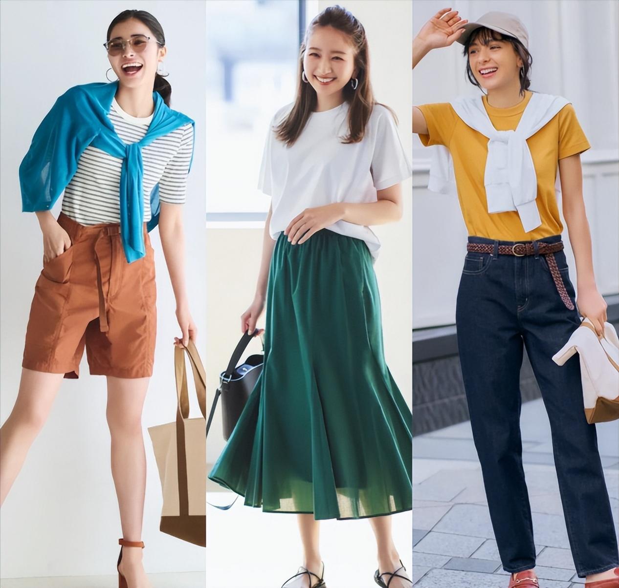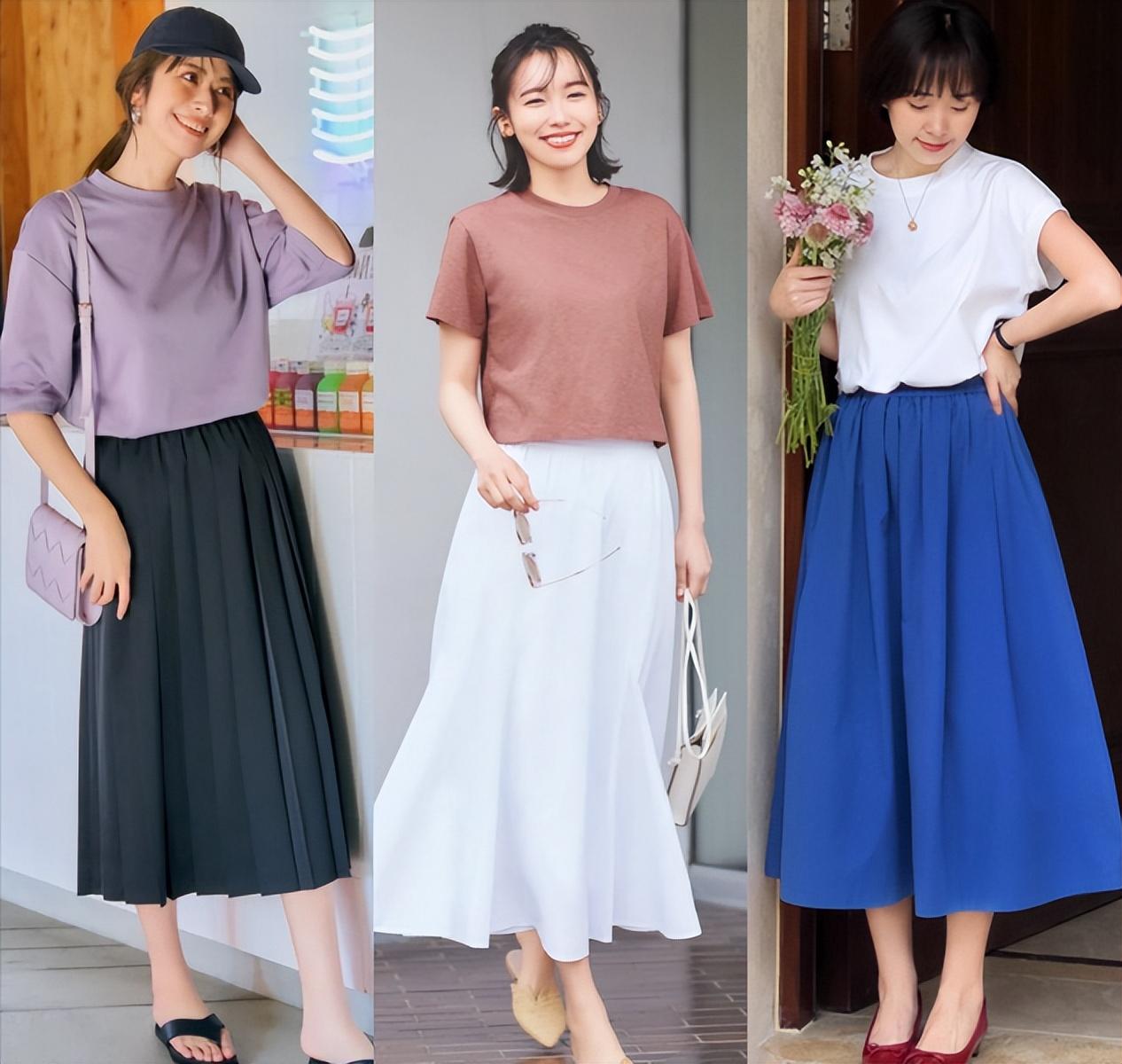 When dressing in summer, you must know how to avoid complexity and keep it simple. Whether it is the color or design of the clothes, it should not be too complicated, just simple design. In the style of matching a T-shirt with a skirt, you can better show the elegance and charm of women. Use a T-shirt with a plain and elegant color to match a skirt with a bright color. In this way, one dark color and one light color form a contrast, which is both elegant and grand. , and will be particularly charming.