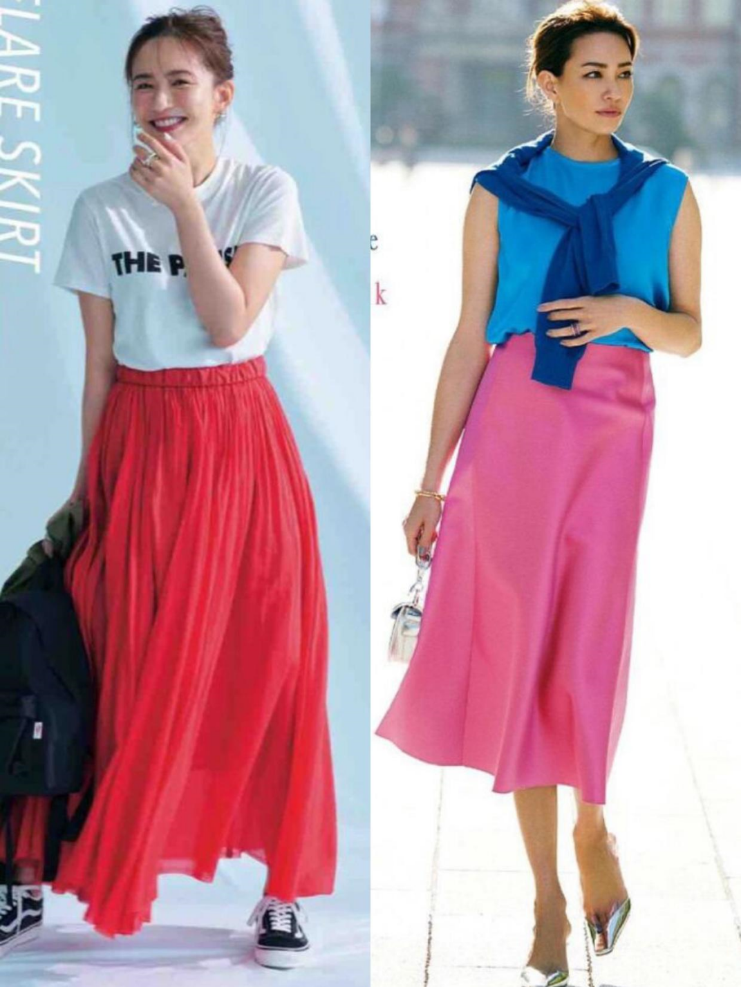 Pure white T-shirts give people a relatively ordinary and monotonous feeling , modified with a brightly colored skirt, it will be more flamboyant, allowing you to look lively and elegant in this hot summer.