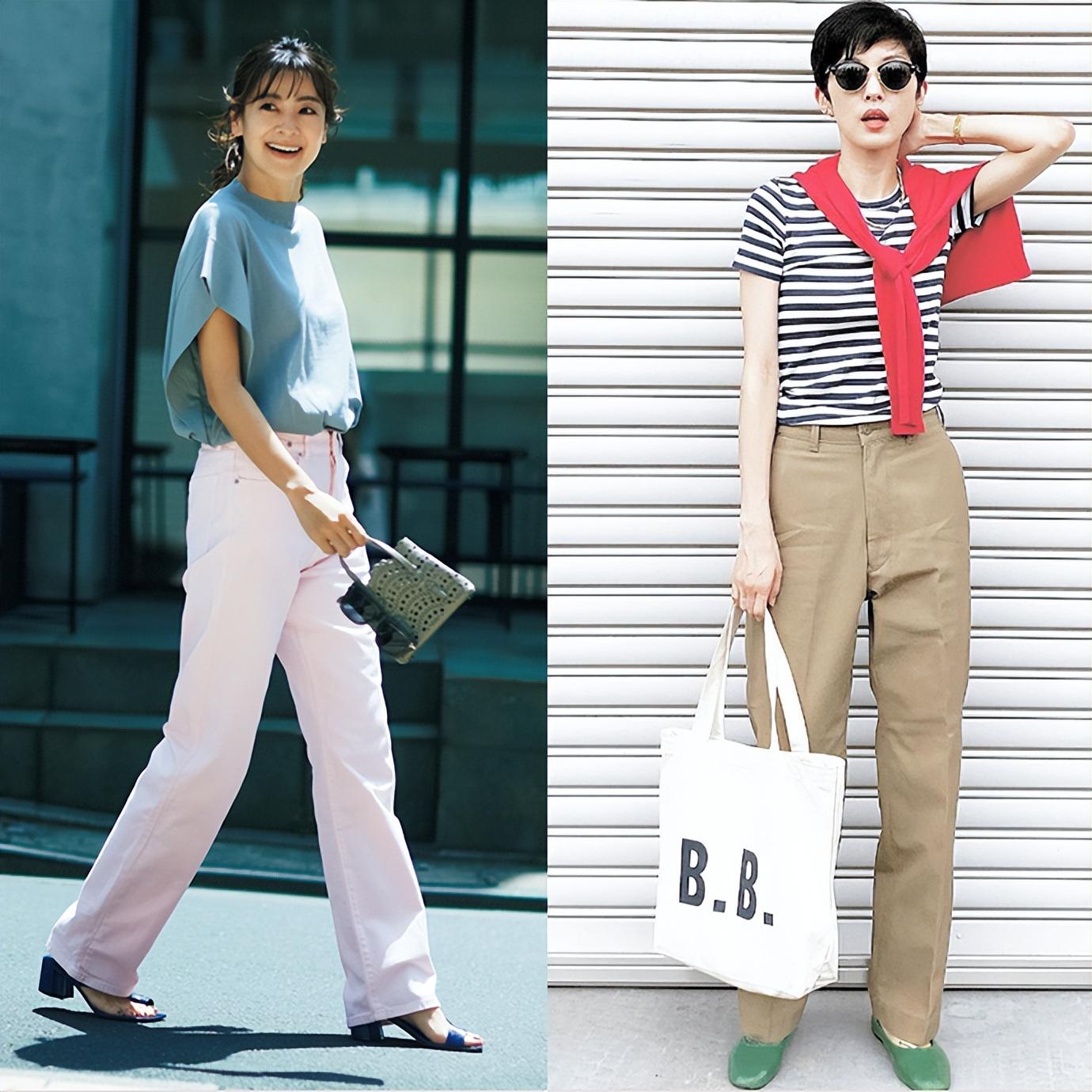 When we wear T-shirts with dull colors, the lower body can match Wear some light-colored high-waisted straight pants in fresh colors, such as light pink high-waisted pants or camel-colored high-waisted pants, which are simple and show your personality.