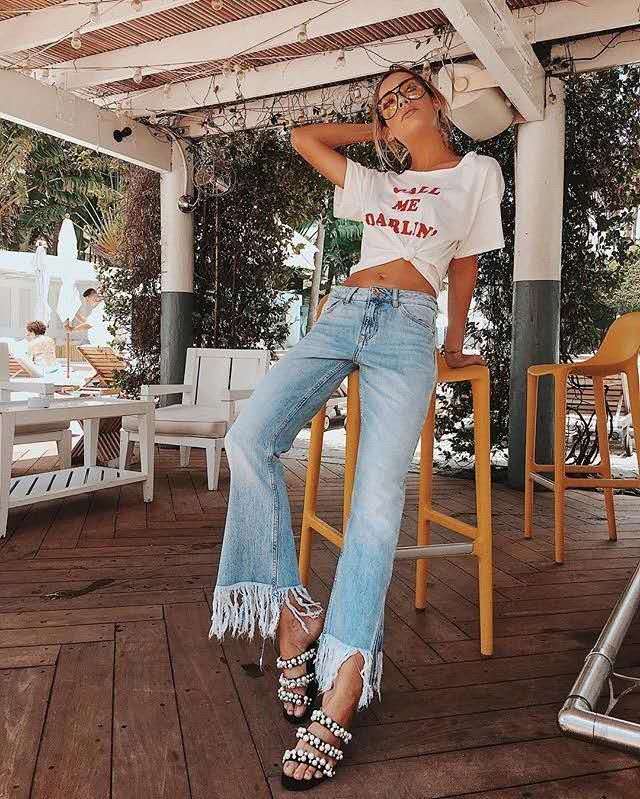 Simple, elegant and casual T-shirts and short tops are not only very easy to wear, but also have low requirements on the figure. The most important thing is that it can be made from local materials and tied with an upper knot at the hem of an existing T-shirt, and the long T-shirt becomes a short T-shirt! It is best to tie the knot at the high waist, which can not only make you look taller and slimmer, but also break the traditional way of wearing T-shirts.