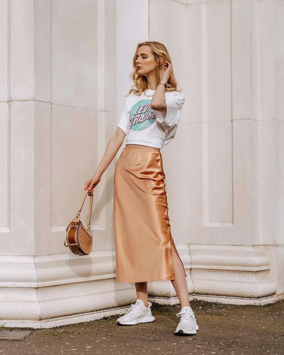 In addition to pants, skirts are also a good partner for short T-shirts. Adding a tee to a cake skirt will make you look short and strong, but pairing it with a short T-shirt and exposing your waistline will immediately make you look taller and slimmer. If you can’t afford a fluffy cake skirt, you can choose an A-line skirt, a straight skirt, and a short T-shirt, which will look equally good.