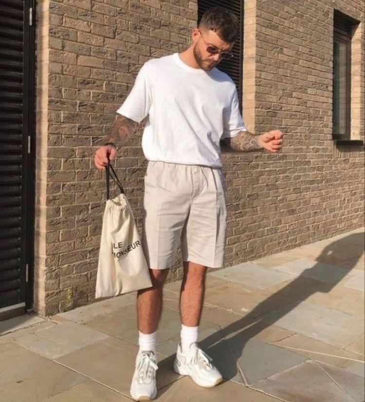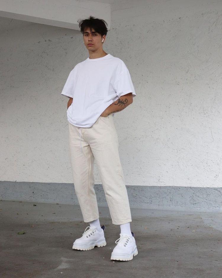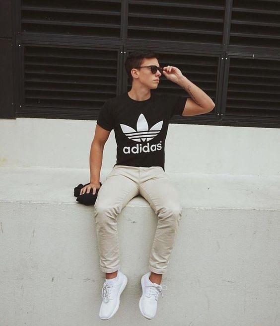 Black, white and gray belong to the colorless system and are best paired together. easy and convenient. Most boys think that black T-shirts will make their skin look darker when paired with them, but you don’t have to consider this issue when paired with white pants. The huge “reflector” of white pants will overpower the dullness of black and make the look more lively and stylish. It doesn’t look dark either.