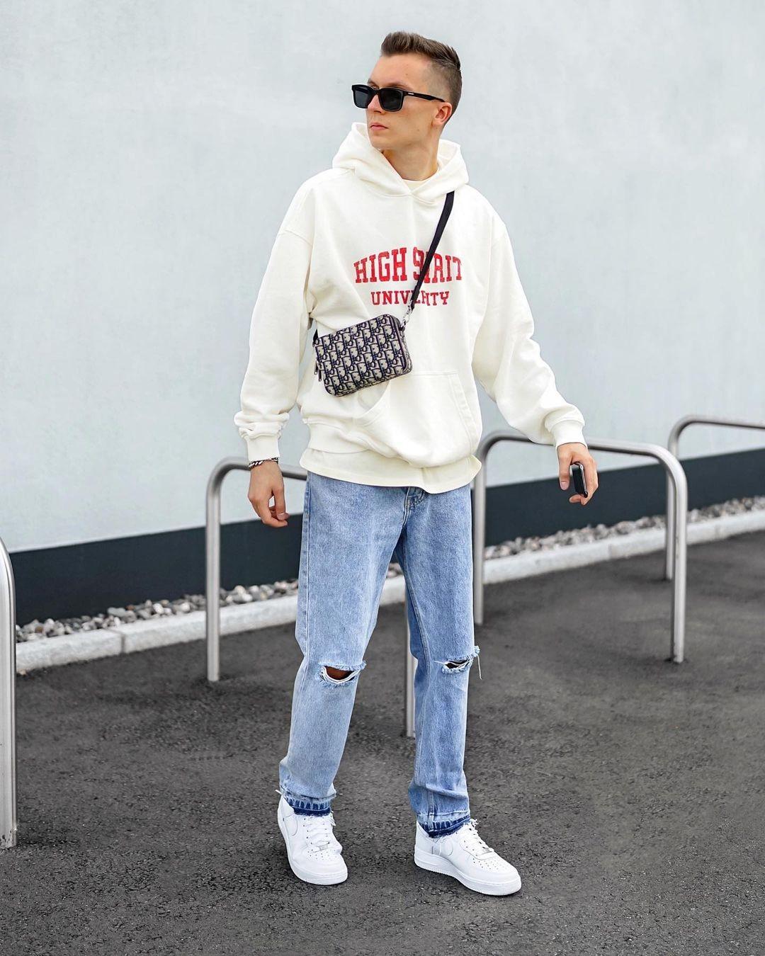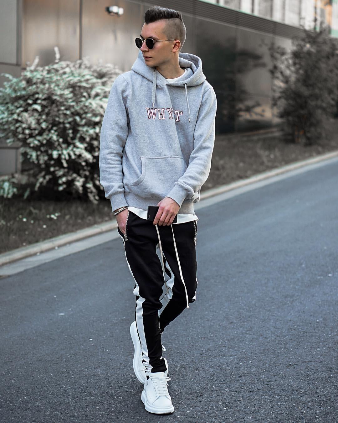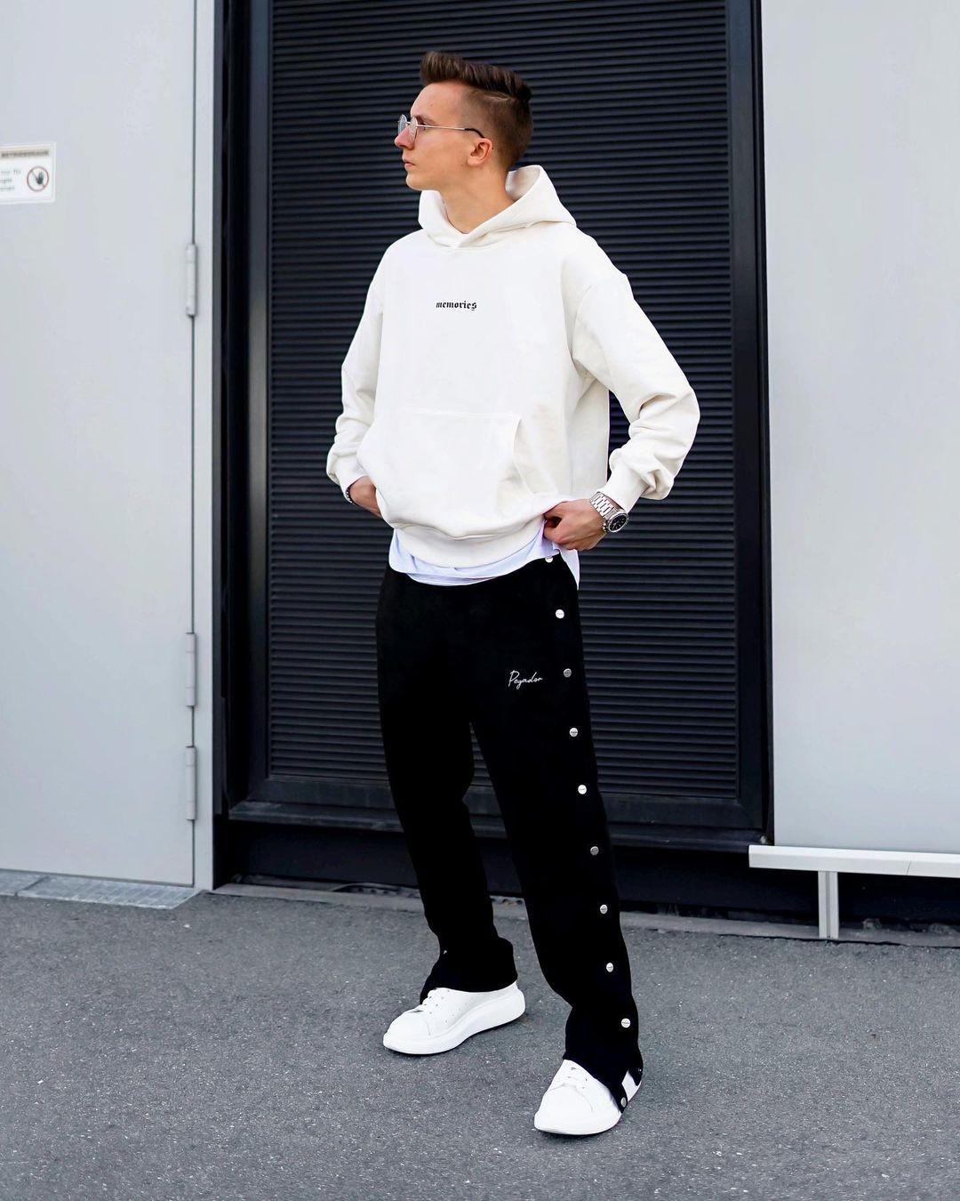 Pairing a hooded sweatshirt with casual pants is a very good solution. The combination of the two has a street vibe and is also very suitable for going out. Wear it, full of trendy male style.