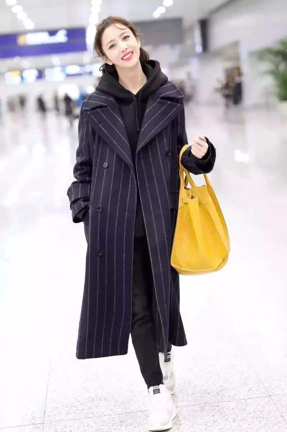 The black pullover hood design embellishes the slender curves of the neck and makes the upper body comfortable to wear. The lace-up embellishment on the neckline makes it comfortable to put on and take off. Wear the lower body with black casual trousers of the same color, which is simple but full of casual sexiness. Wear it with a classic striped coat, which is fashionable and elegant and shows a bit of intellectual charm. Wearing white casual shoes on your feet is extremely suitable whether you are going out on the street or out for fun. The eye-catching yellow handbag looks extremely brilliant and makes the overall outfit more eye-catching