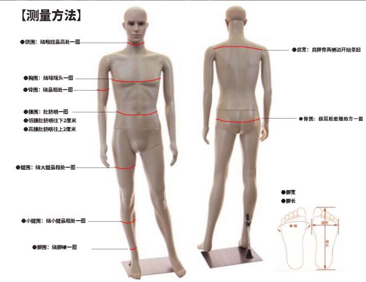 Mainly measure your collar circumference, chest circumference, arm circumference, waist circumference, hip circumference, leg circumference, and calf circumference.