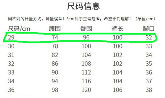 Shopping After spending a long time on Taobao, I fell in love with a pair of slim casual trousers in my girlfriend’s store. I clicked on the details page and saw that the size chart parameters are as follows↓