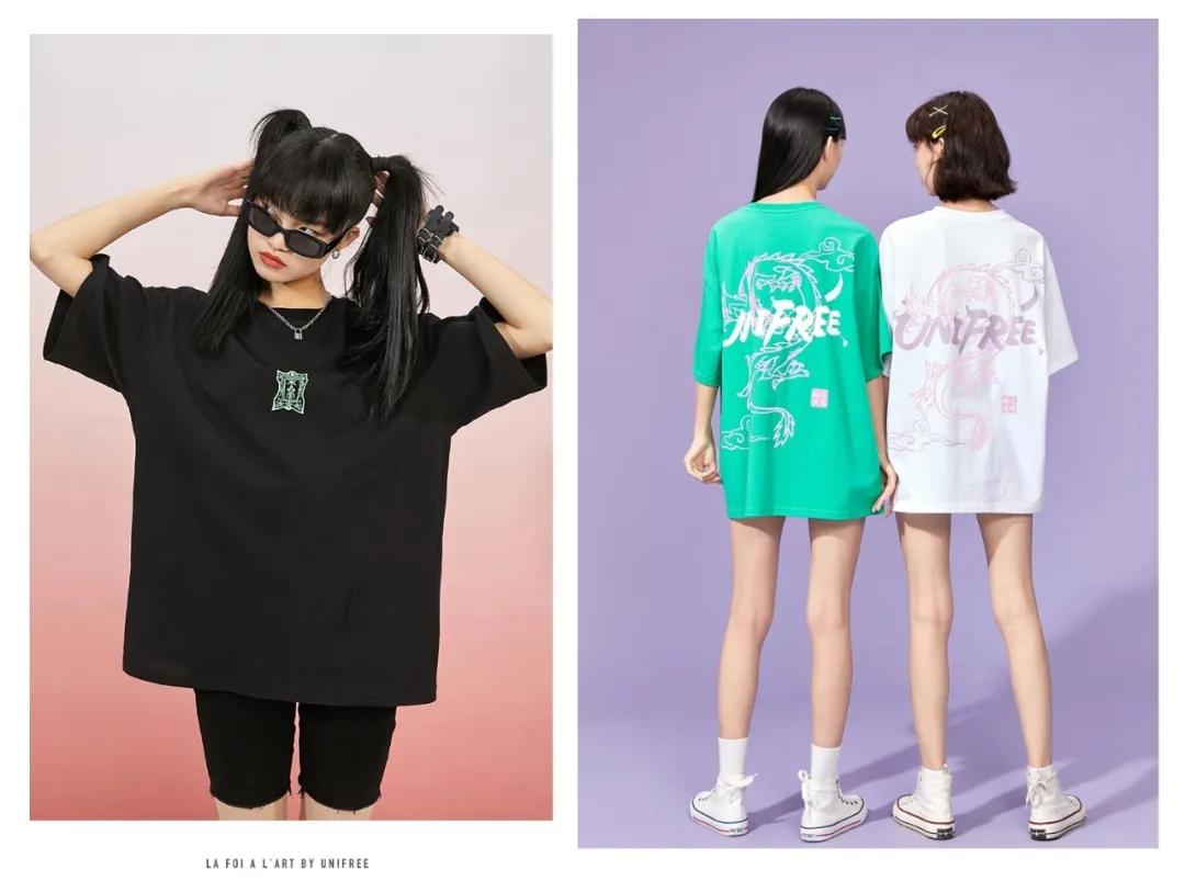 This T-shirt uses this year’s most popular national trend. The pattern is a co-branded model of Nezha Naohai. It is designed into an auspicious cloud and dragon pattern, which will give you a sense of Chinese style. It is very eye-catching and is also very suitable for cool girls to wear.