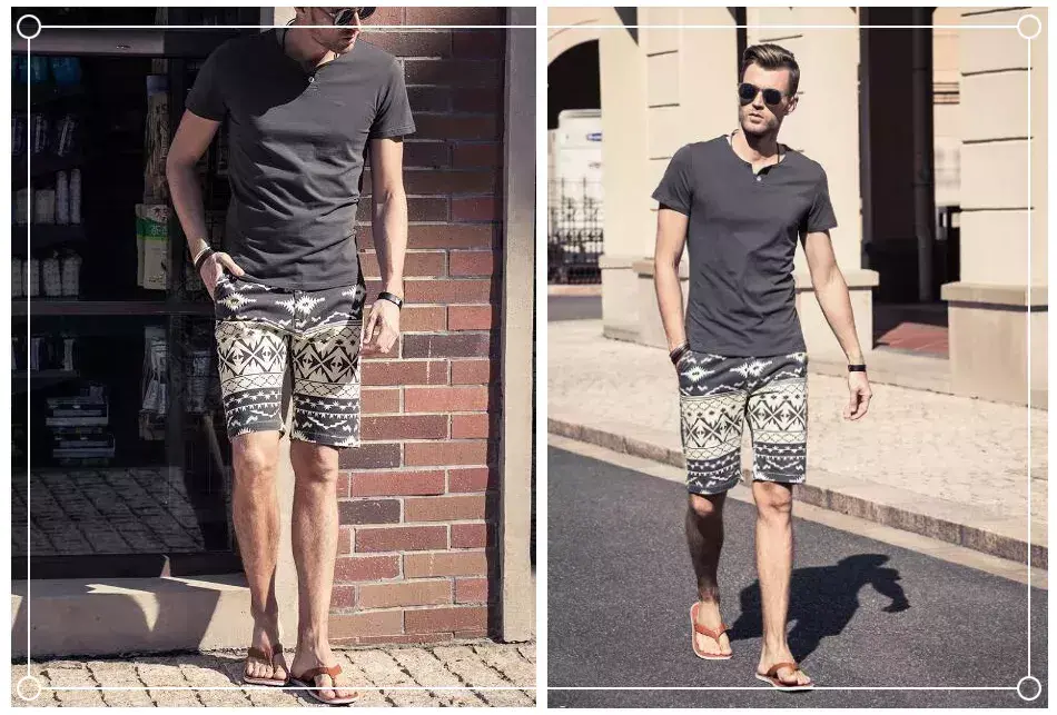 The gray T-shirt is not only versatile, but also looks great when worn. , so it is very suitable to have one in your wardrobe for daily use. For example, this set of tops is a pure gray T-shirt. The slim and three-dimensional cut is matched with the printed shorts on the bottom, and you can easily show off the street fashion atmosphere. , wearing this in summer is very cool and comfortable.