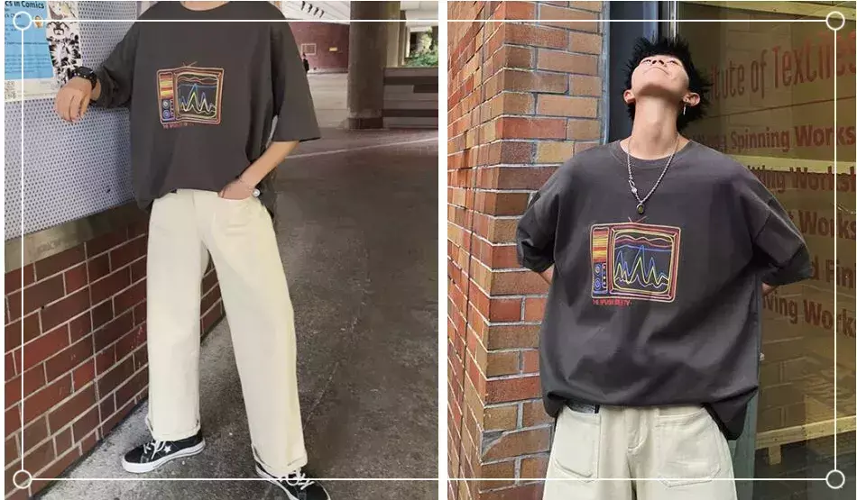 We often say that gray is a color with a sense of luxury. , not only because it has a versatile and elegant feeling, but also because of its versatile style. Pairing beige wide-leg pants with a gray T-shirt is full of street style. I believe the effect will never be better than black and white. Not bad, and such a light-colored item matches the skin tone very well, making it more suitable for some dark-skinned men to wear.