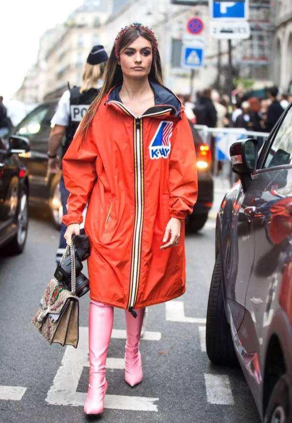 This bright orange long jacket has a loose version that is comfortable and casual, but also contains a free and easy dynamic beauty. Barbie’s pink boots stand out in particular, and the rare color items can highlight the high-end personality. The delicate red headband on her head exudes a girlish glow, and the khaki bag adds a bit of mature charm. This bold combination of colors has obvious European and American characteristics. I wonder if everyone can accept it?