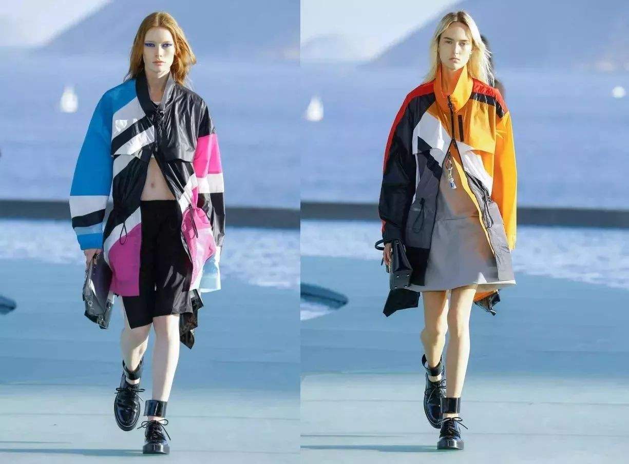 This jacket is increasingly used It has a three-color splicing design of blue, white and purple, with black and white lines embedded in the collar and cuffs, adding a high-end creative style. At the same time, the compact design also shows the charm of high-end fashion. The lower body is a dark blue elegant skirt, the bright red belt is bright and individual, and the four symmetrical buttons add exquisite charm. The combination of sporty style and feminine atmosphere is particularly stunning
