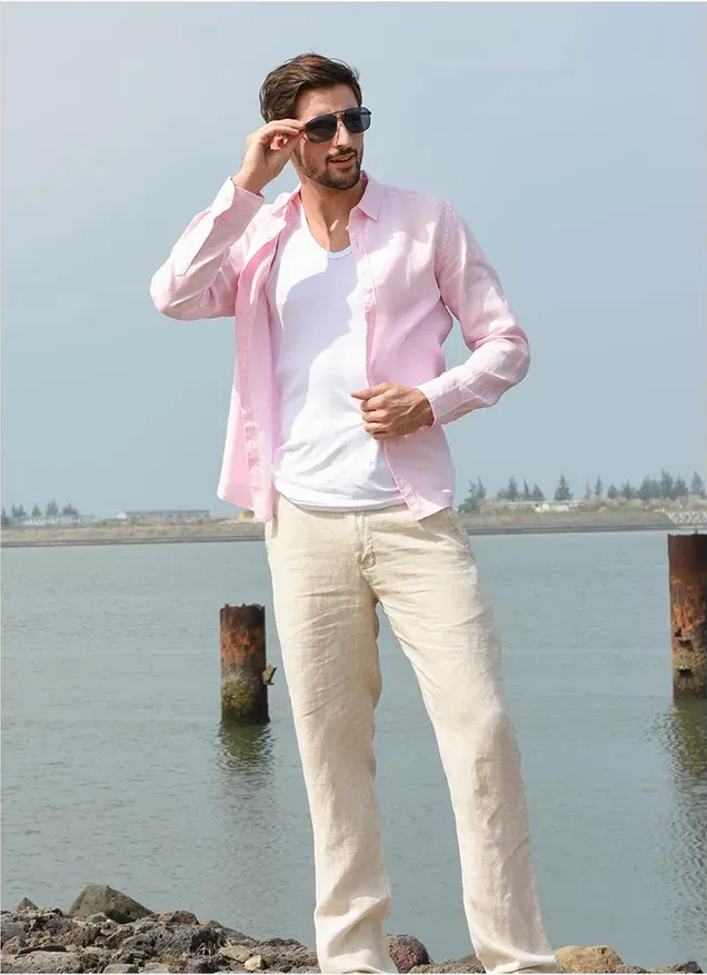 Choose lightweight cotton or linen materials. They have good breathability and will effectively help You avoid getting soaked in sweat! You can make bold attempts and mixes in colors, but the overall color scheme is guaranteed to give people a sense of comfort! In addition, long sleeves can also avoid exposing too much skin and getting tanned.