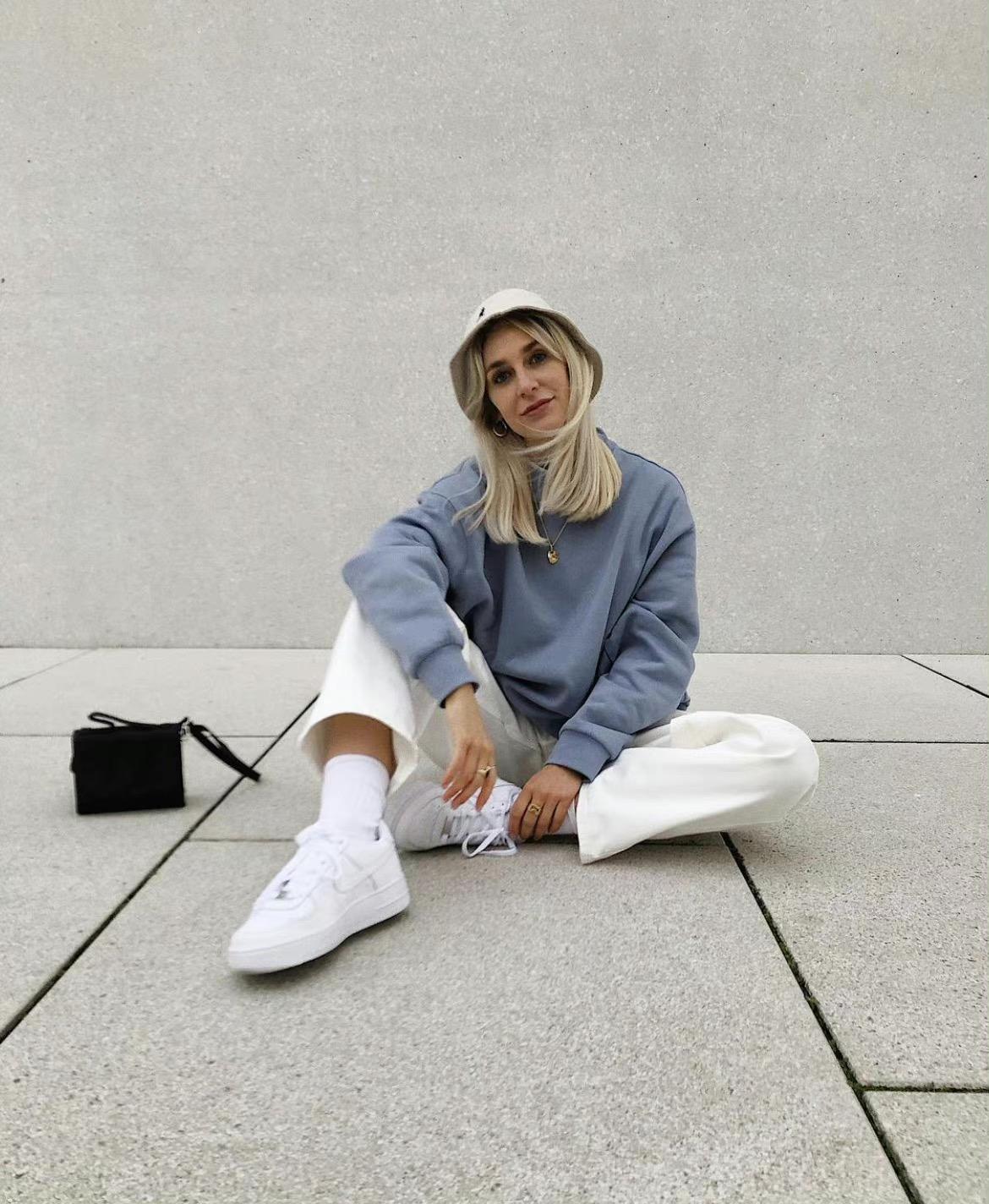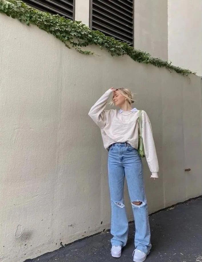 For example, a sweatshirt below, casual wide-leg pants and sneakers below. The whole set is casual and casual, and it is difficult to bring out a sense of fashion.