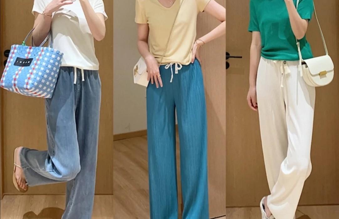 Loose white wide-leg pants can cover up many deficiencies in leg shape. This type of item can also give women a cleaner atmosphere in their clothing. There are many color patterns.