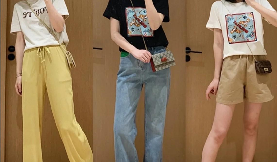 No matter what the current popular items are, T-shirts will always have a “name”. It is a basic clothing with sufficient appeal. Clothes of different colors and lengths can give women certain dressing ideas. Wear it with a short T-shirt and trousers to increase the height effect.