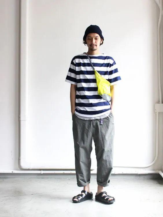 It is also very suitable to use a striped T-shirt to create a holiday style. Pair it with shorts or loose pants, add a fisherman hat and sandals, and you will have a full ocean look. The style is full of literary and artistic style.
