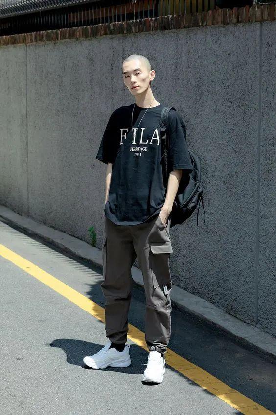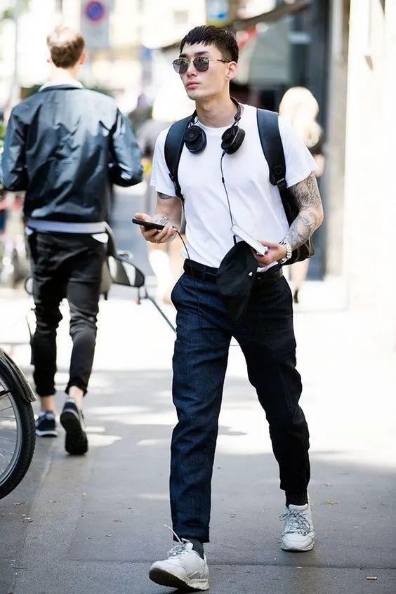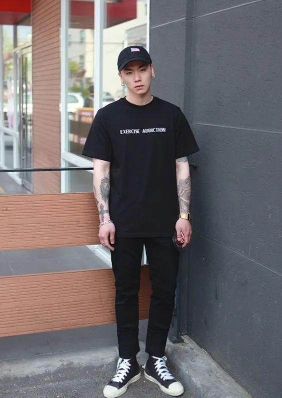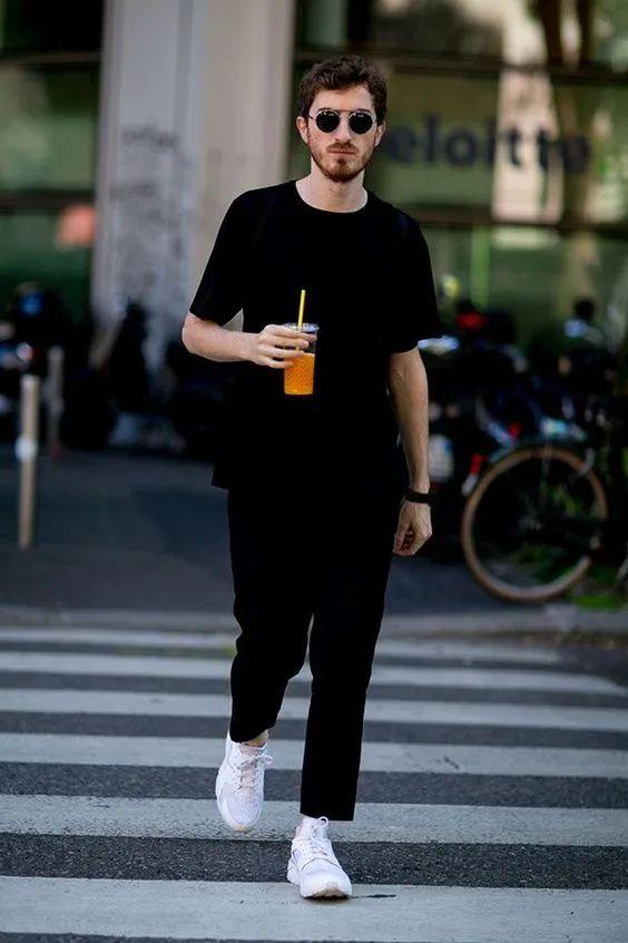 Similarly in the black-toned look, some white embellishments make the look richer, although there is a small area of white printed on the black T-shirt. letters, but the entire shape will change a lot visually. Add a pair of black and white shoes, and the shape will be very layered.