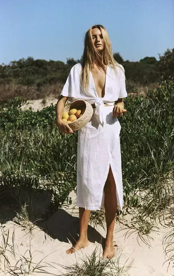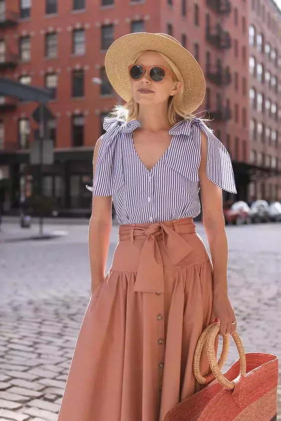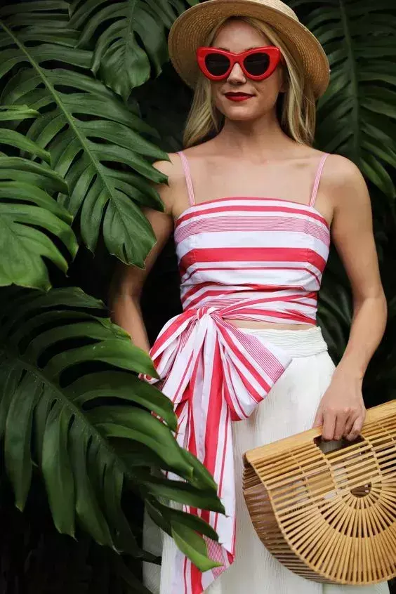 Tying a knot on the chest is a fashionable and sexy way, especially suitable for summer Vacation wear can not only slim your waist but also accentuate your “small waist”. It’s super photogenic! !