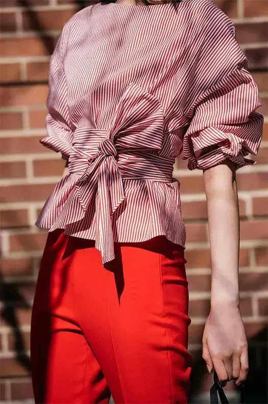 Sleeves The knotting is also the highlight of the details. The small knots on the sleeves also become more lively and interesting, allowing you to easily get the romantic feelings of summer. The long streamers become a lot more elegant and very stylish.Street style~~
