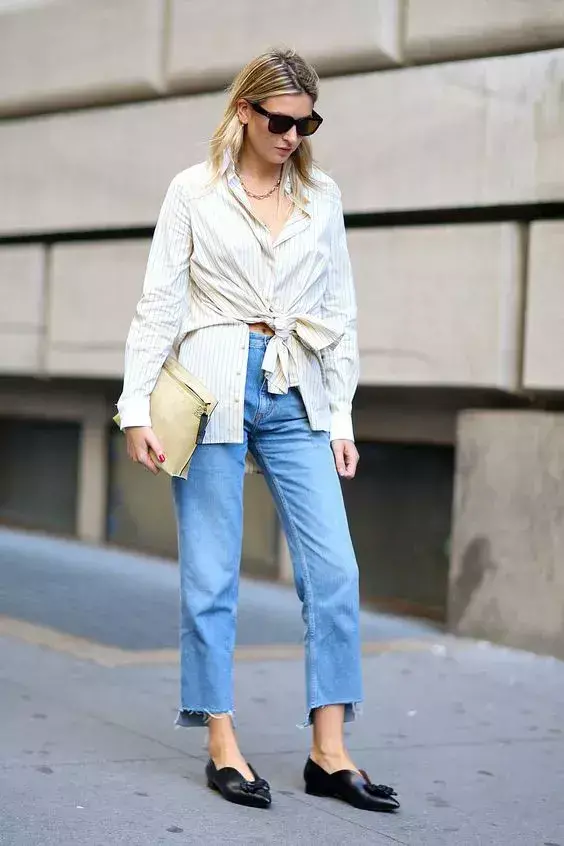 Shirts are most suitable for knotting, shirts that are not slim-fitting Tie a knot to make the clothes more protruding, which can not only improve the waistline, but also make the boring shirt more interesting~