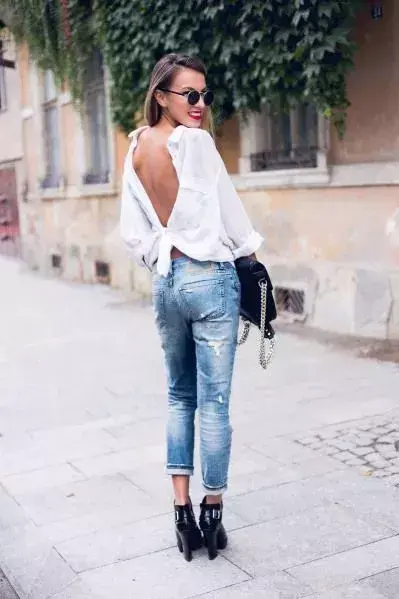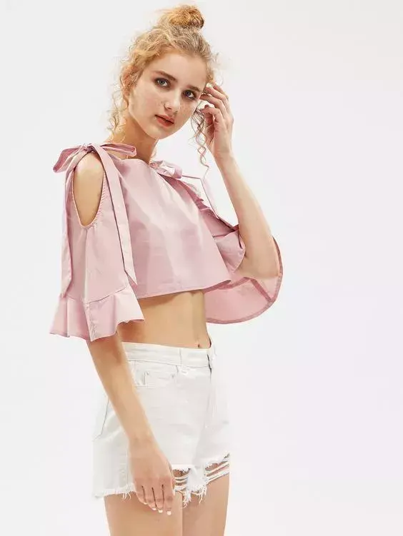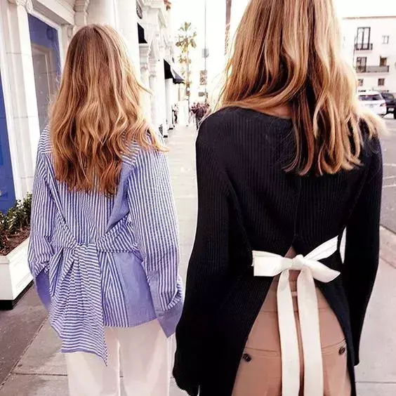 Wear the shirt backwards, exposing your beautiful back, for a sexy alternative Wind, a simple and unmistakable combination of tying a knot, the overall shape is very interesting, giving people a beautiful sense of mistake~