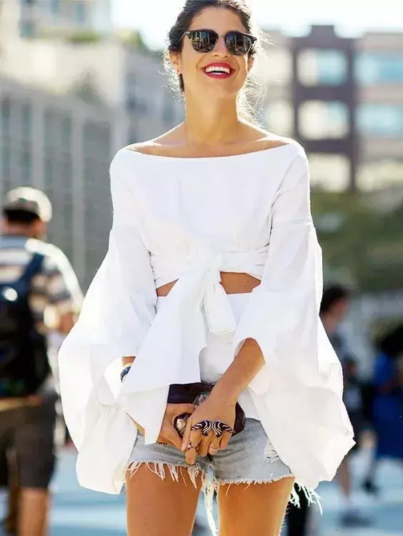 The most common thing is that the T-shirt is knotted, which makes the most Ordinary T-shirts become short and slim-fitting, and knotted T-shirts in bright colors will give you a sense of vitality and design! !
