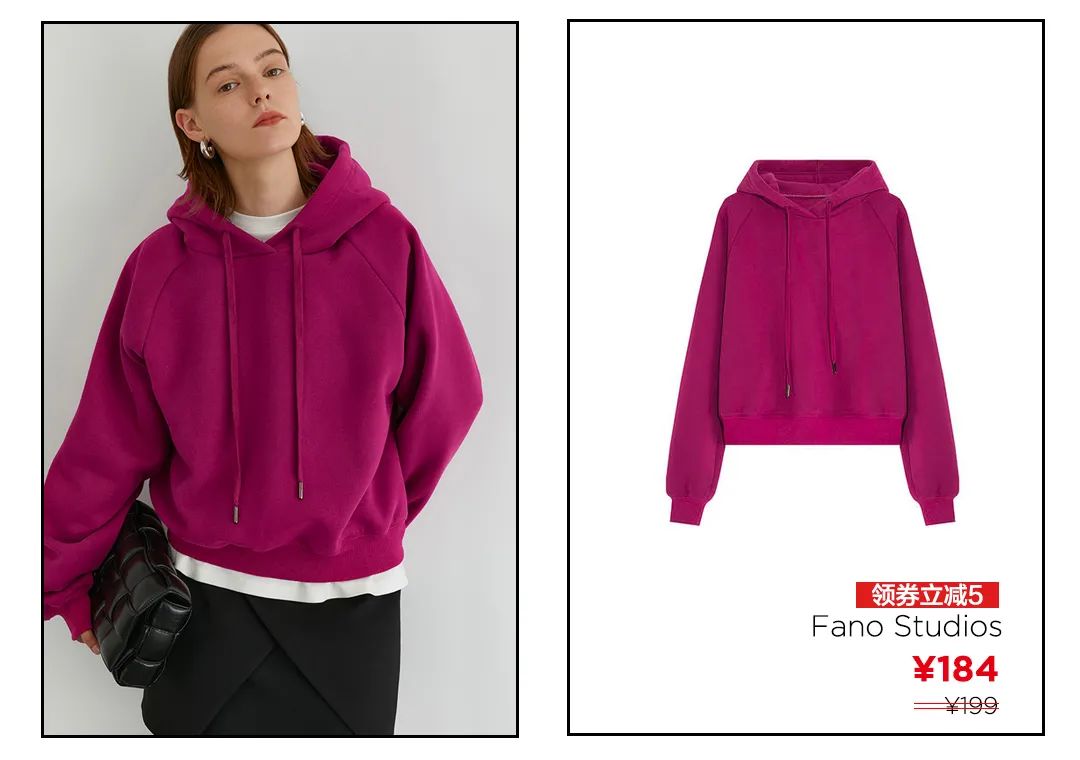 If you have a preference for burgundy, don’t miss it. For hooded sweatshirts, the editor prefers solid colors without logos, because it looks very fashionable when worn alone with a white T-shirt.